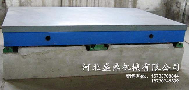 3、鑄鐵平板安裝時(shí)將鑄鐵平板的各個(gè)支撐點(diǎn)用調(diào)整墊鐵墊好、墊實(shí),由_技術(shù)人員將鑄鐵平板調(diào)整至合格精度。